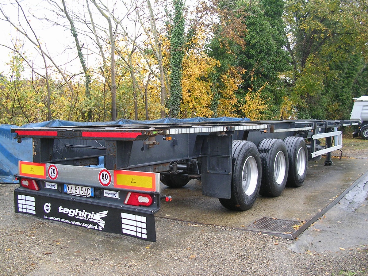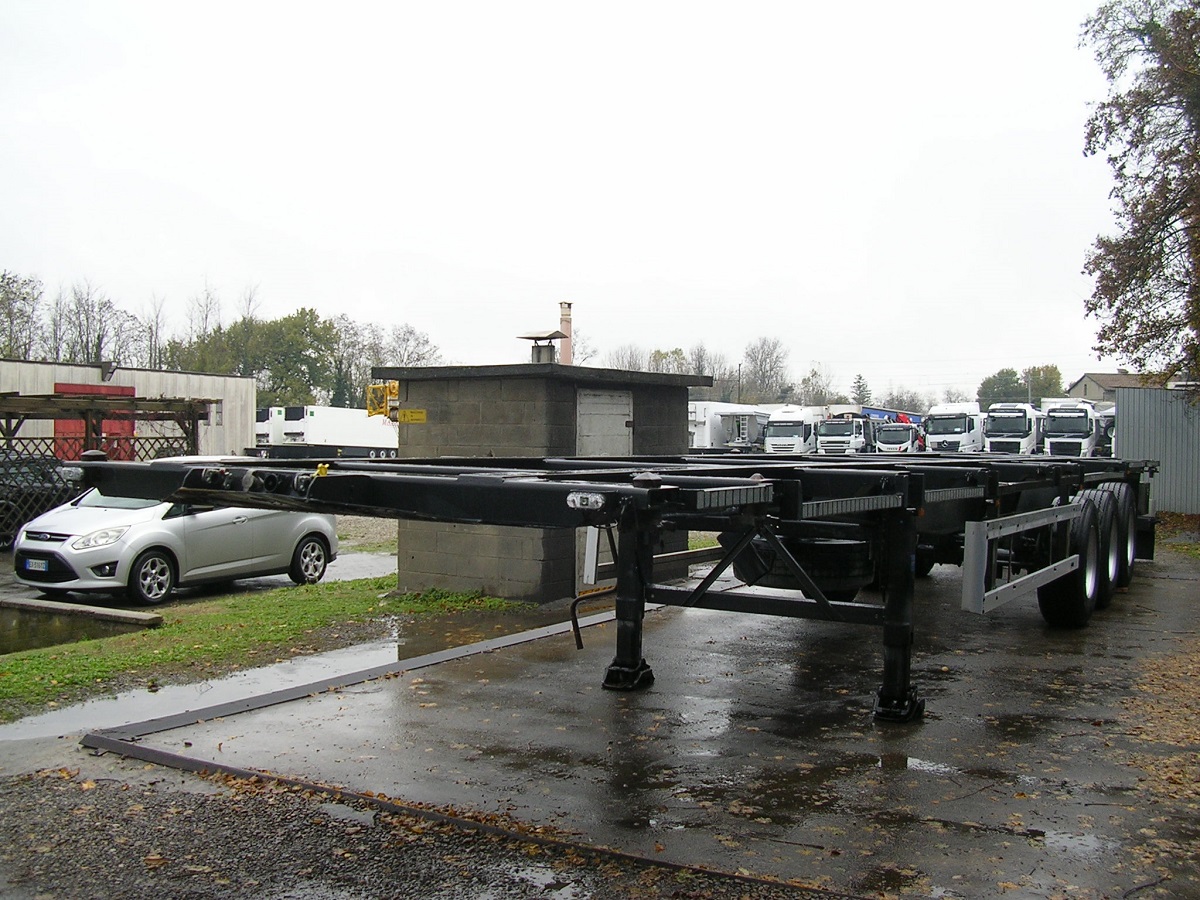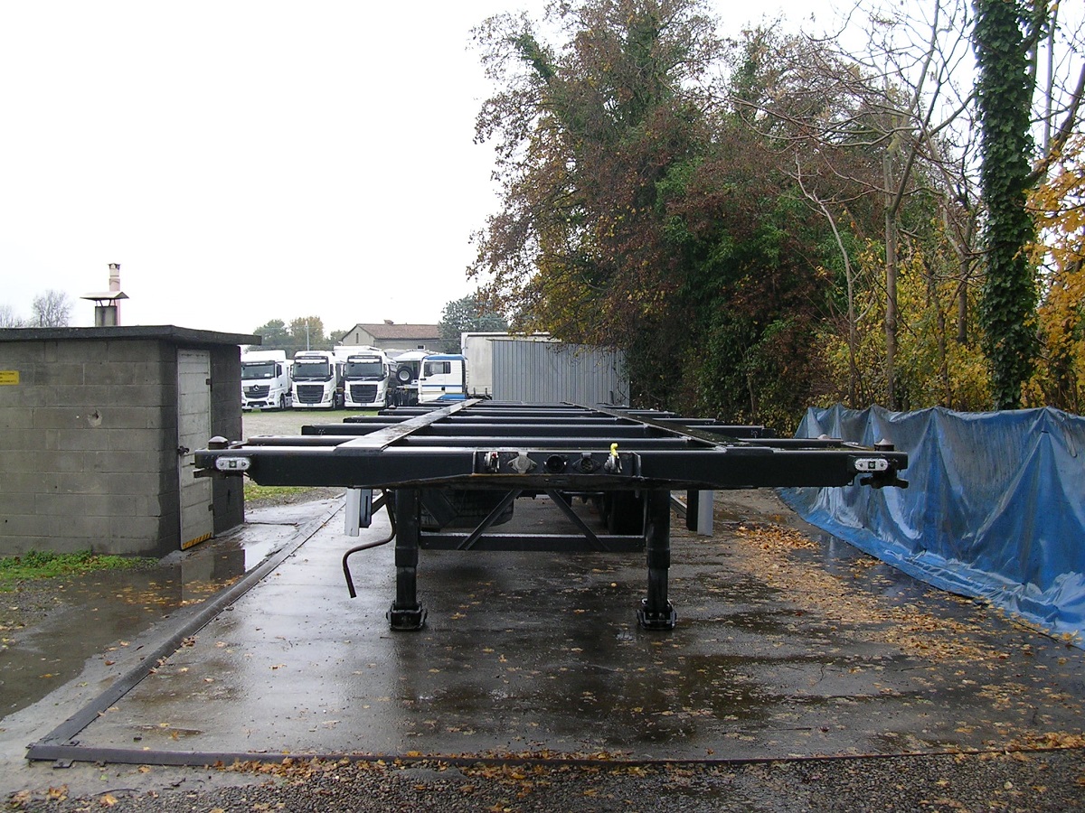 Lunghezza telaio = 13mt. | 1°asse sollevabile | 3°asse sterzante | assali Ror | freni a tamburo | casse da 20′- 30′- 40′ | 385/65R22,5