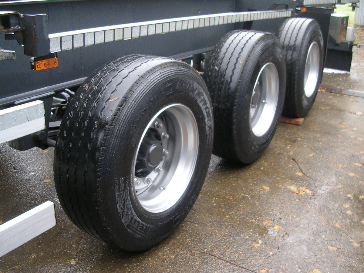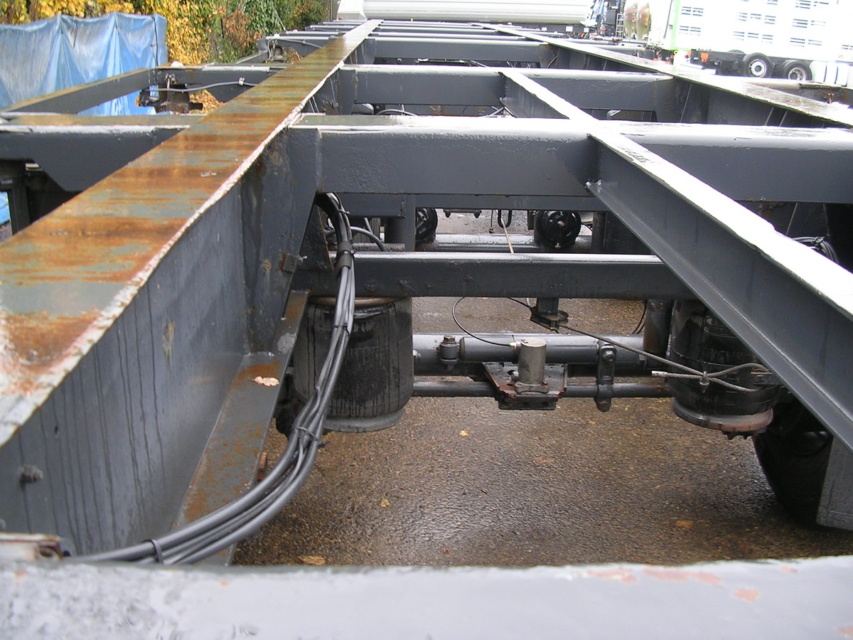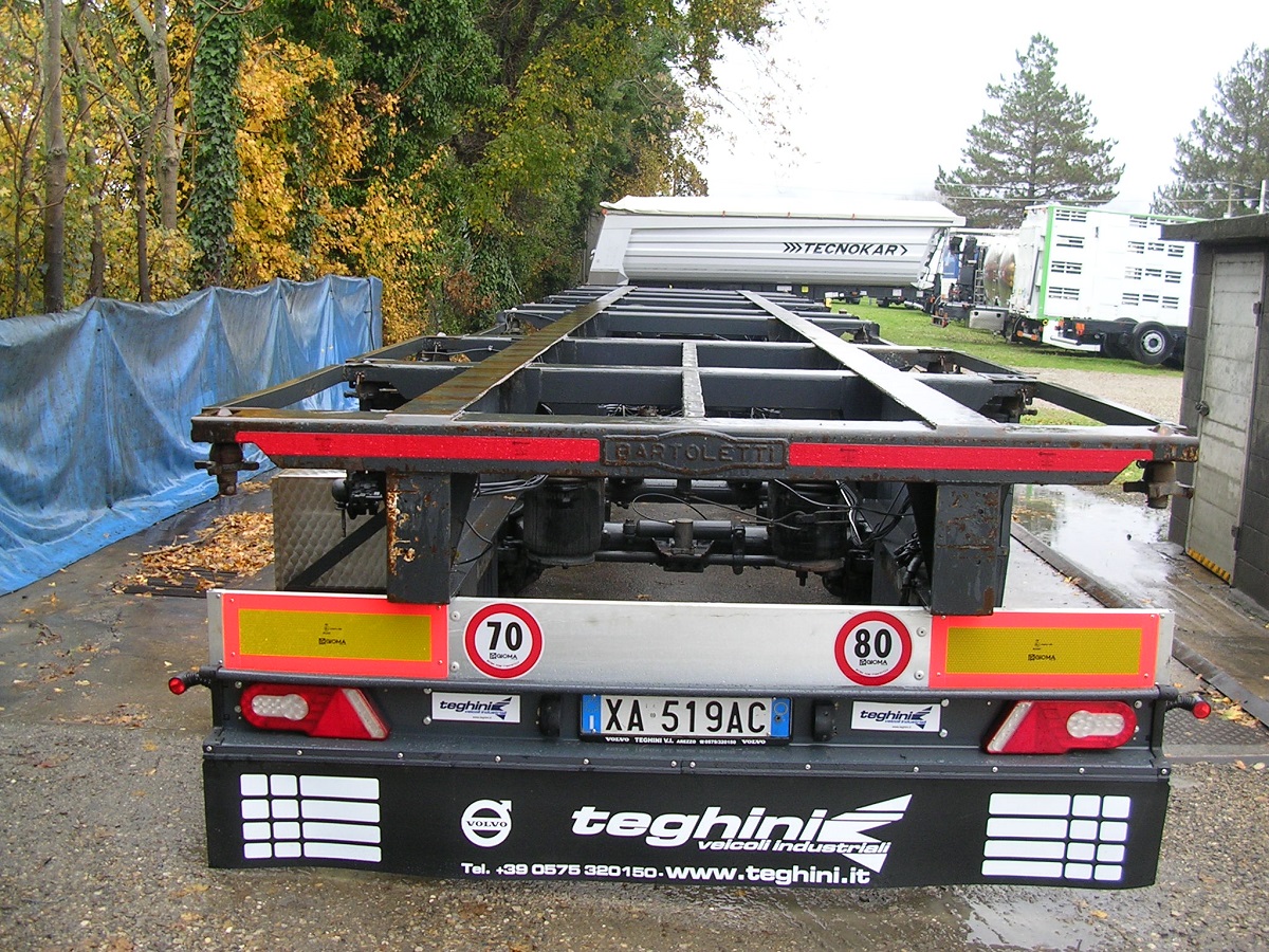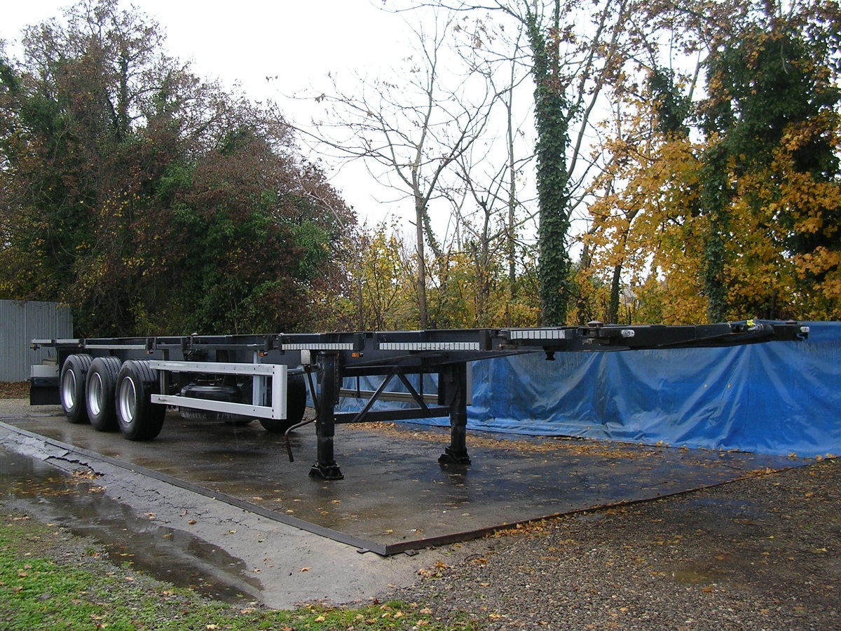 Lunghezza telaio = 13mt. | 1°asse sollevabile | 3°asse sterzante | assali Ror | freni a tamburo | casse da 20′- 30′- 40′ | 385/65R22,5